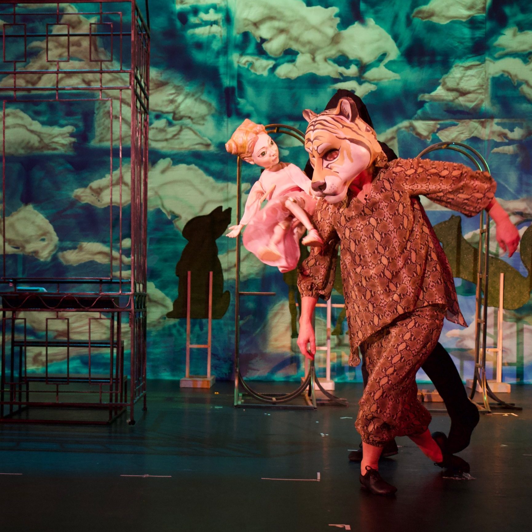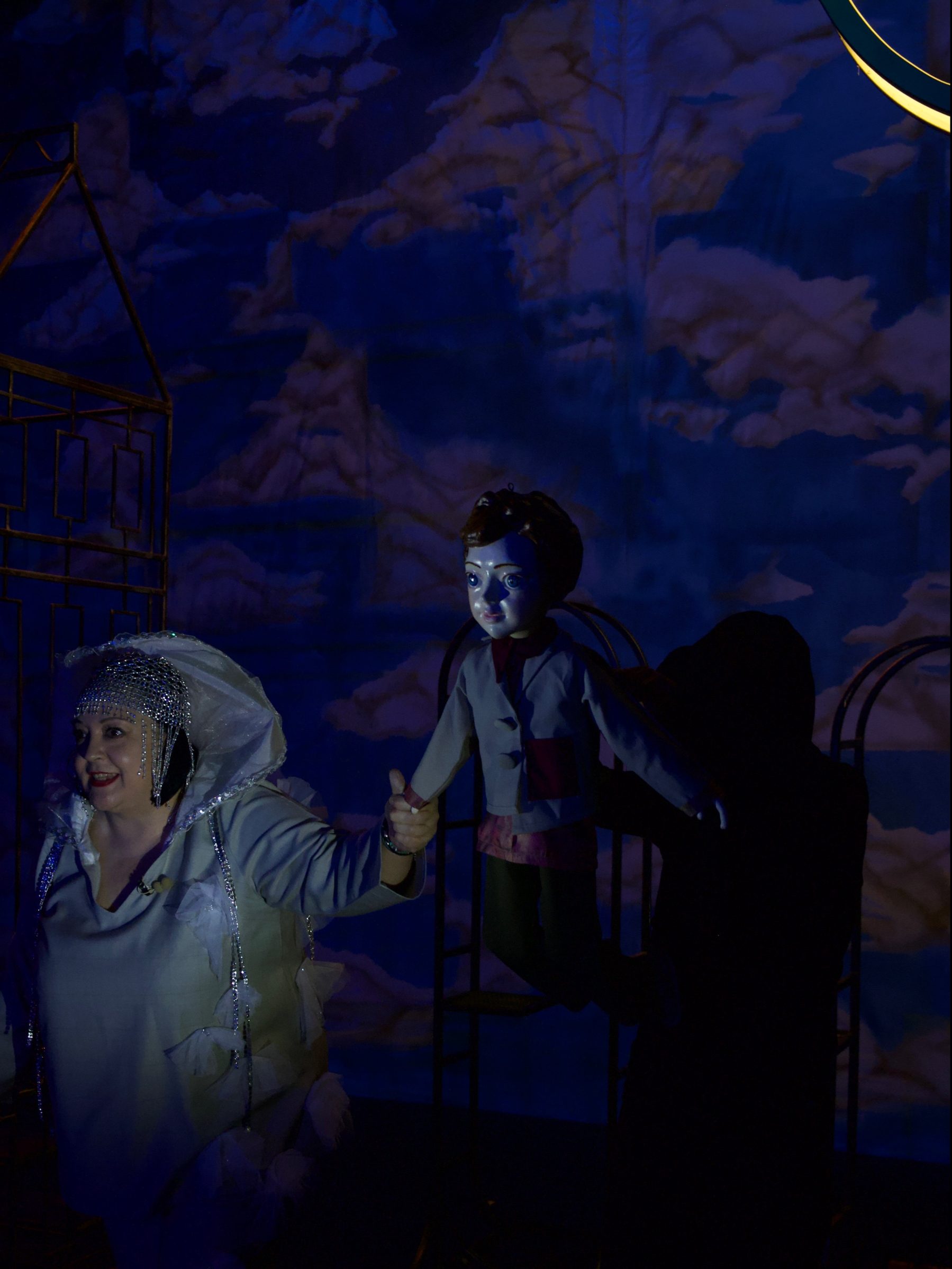 Within a “raw” set design—symbolic and abstract in its outlines, like a child’s precise drawing unfold stage pictures that are at once enigmatic and playful, profound and dreamlike. In this setting, where fantastical and realistic worlds coexist, the scenes come alive with hyper-realistic puppets that fly and gaze sharply, as only children can, alongside fantastical masks and games of light and reflection. Peter Pan becomes a space of perceptions, resonances, and reconstructions—a prism of adventures, gestures, and colors.